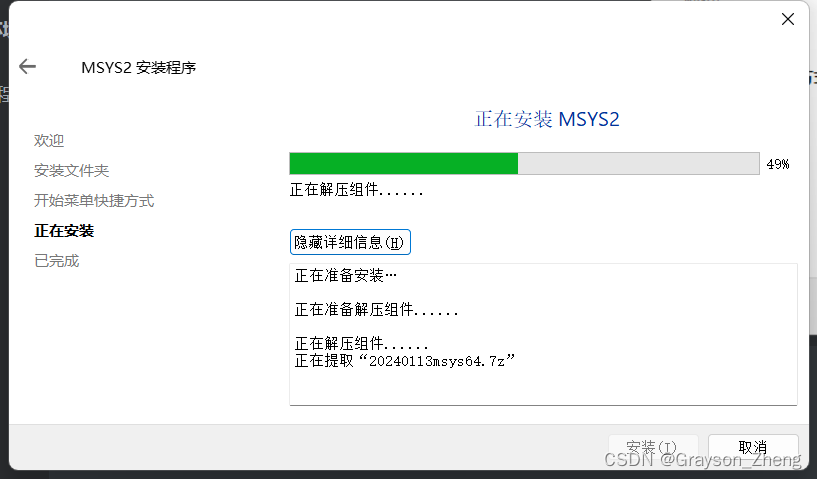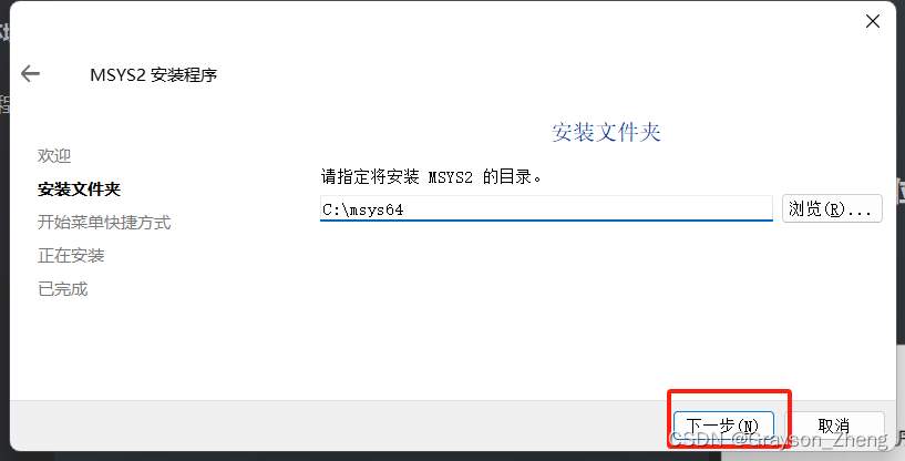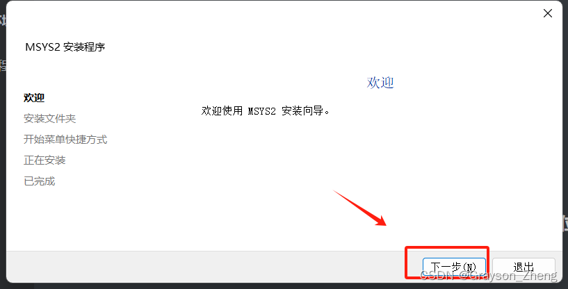 双击msys2-x86_64-20240113.exe运行安装程序。