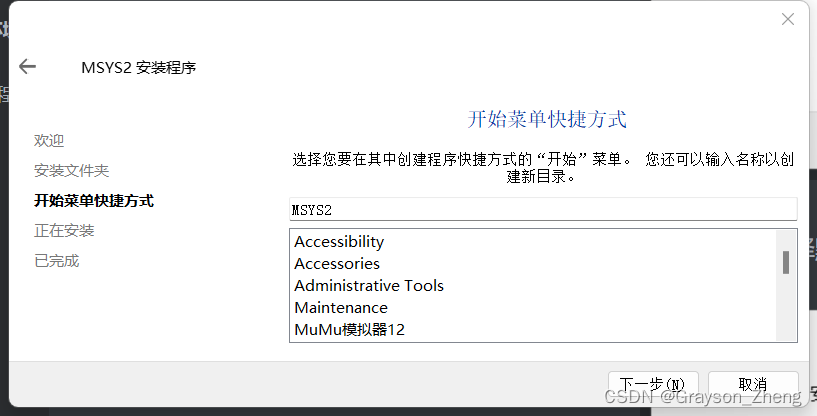 开始菜单中的名字,这个还是可以直接默认,点击下一步