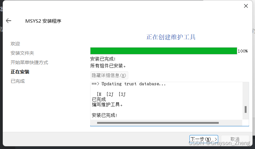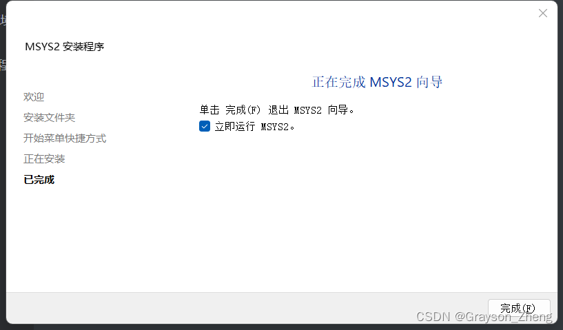 默认勾选立即运行MSYS2,单击完成