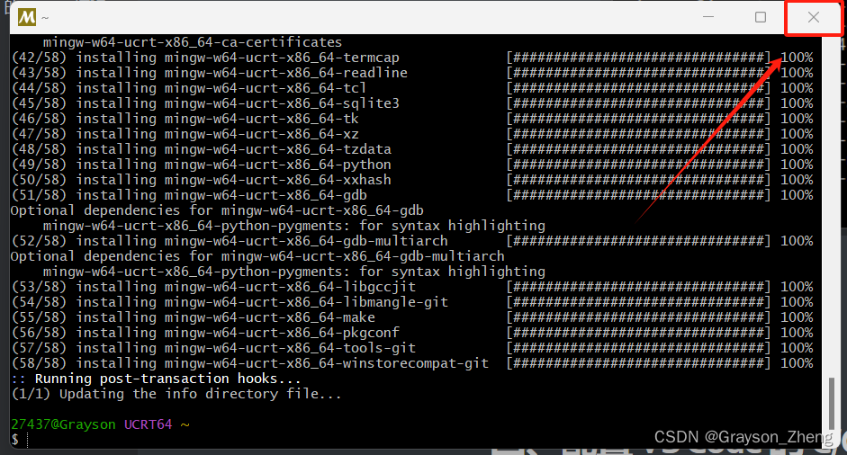 当所有的包都安装好后,直接关闭终端。