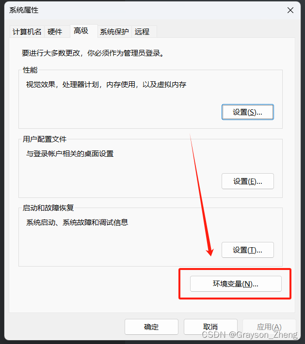 在系统属性的弹窗中,点击环境变量