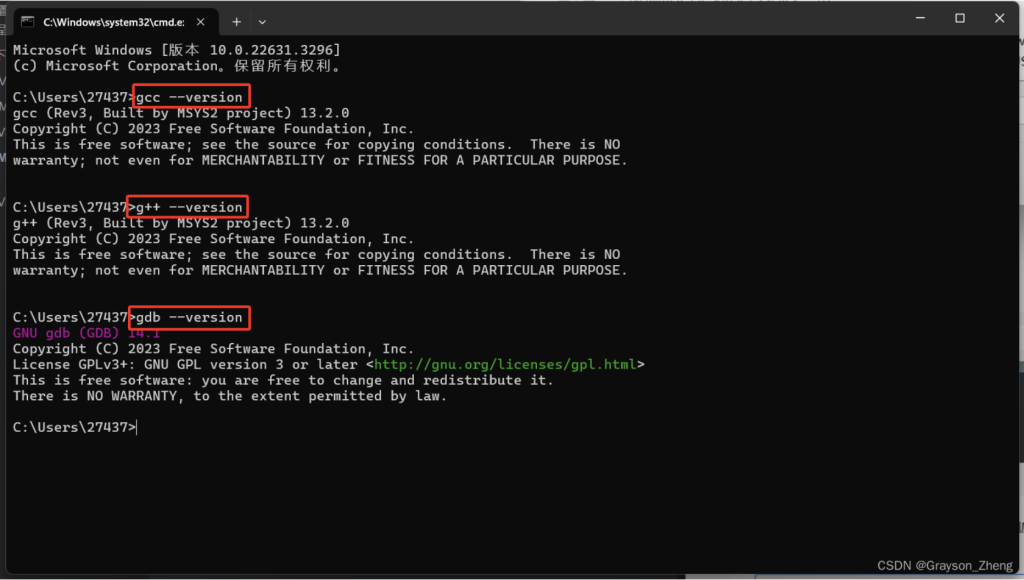 出现如下图一样的信息,就说明 C/C++ 的编译环境已经安装好。