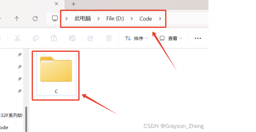 我新建了一个名为Code的文件夹,并在里面新建了一个用于专门放 C 语言代码的文件夹。