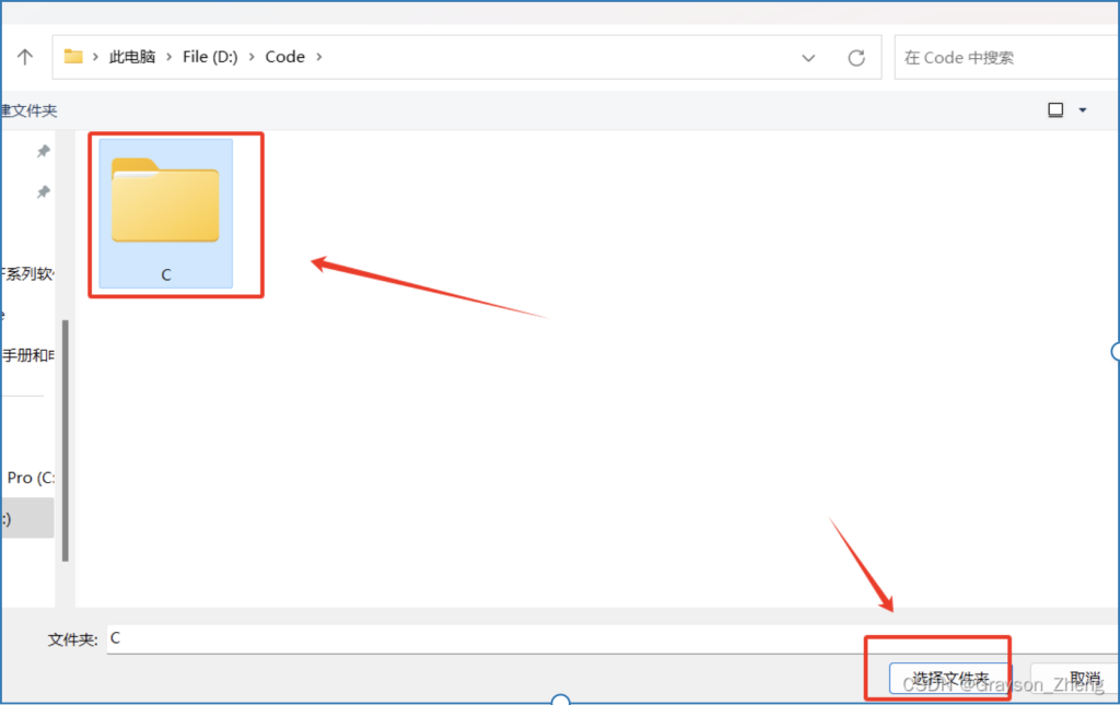 在弹窗中找到刚刚新建的C文件夹,选中文件夹,再点选择文件夹