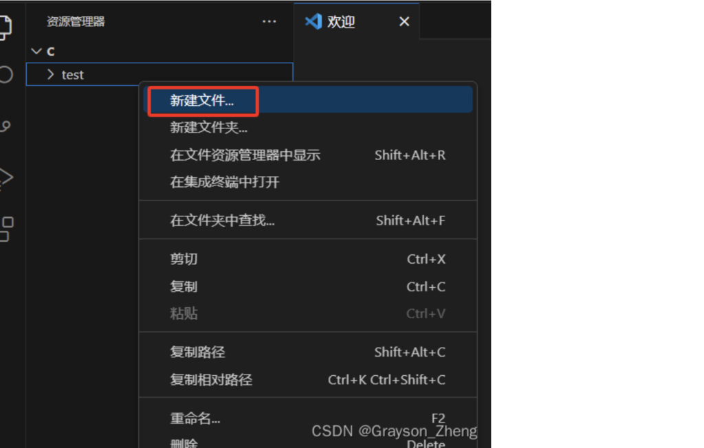 鼠标右键test文件夹,在弹出的菜单中选择新建文件