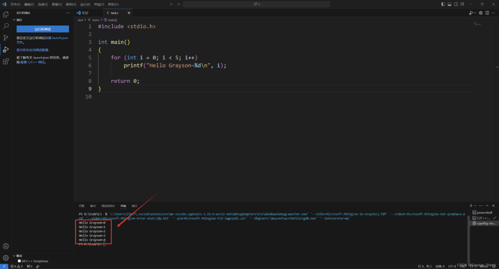 五、测试 VS Code 的 C/C++ 编程环境
