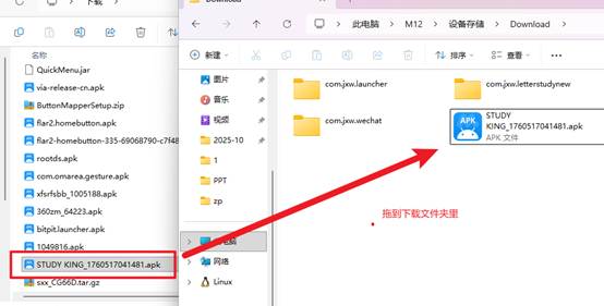 • 将重命名后的MT管理器安装包,移动(拖入)到「Download」文件夹内;