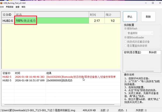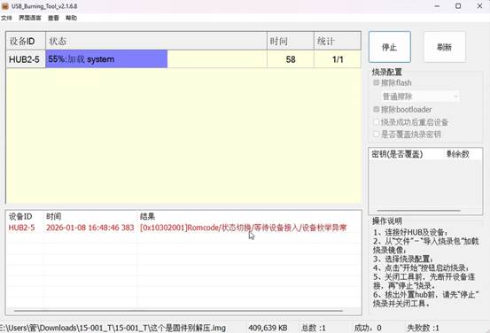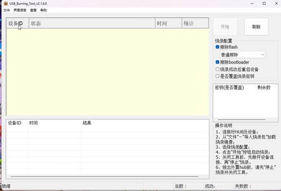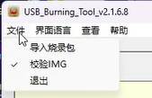 • 导入固件烧录:在刷机工具里点击「文件」-「导入烧入包」,选中准备好的固件,点击「开始」;