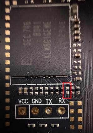 • 开始短接操作:用镊子或一字螺丝刀按住两个短接点别松手,同时给玩客云插上电源;