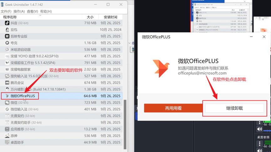 找到要卸载的软件,直接双击它,会自动调出该软件的官方卸载界面,按提示完成基础卸载后,Geek 会弹出 “扫描残留” 提示,点击 “确定”,等待几秒就能清除残留文件和注册表,卸载一步到位。