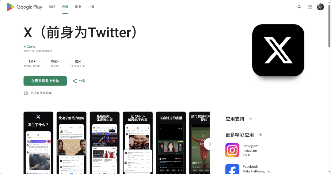 3. 选择开发者为 X Corp.(或有官方验证标识)的应用,点击「获取/入手」。