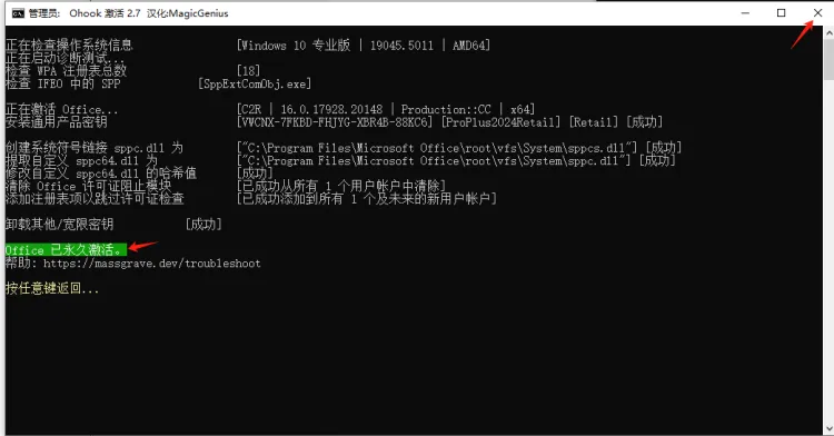 9-1.4.当界面提示“...永久激活”,点击右上角【X】关闭。