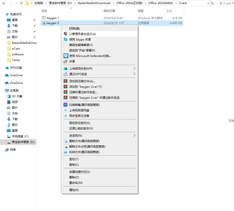 9-2.1.鼠标右击【Keygen 2】选择【以管理员身份运行】。