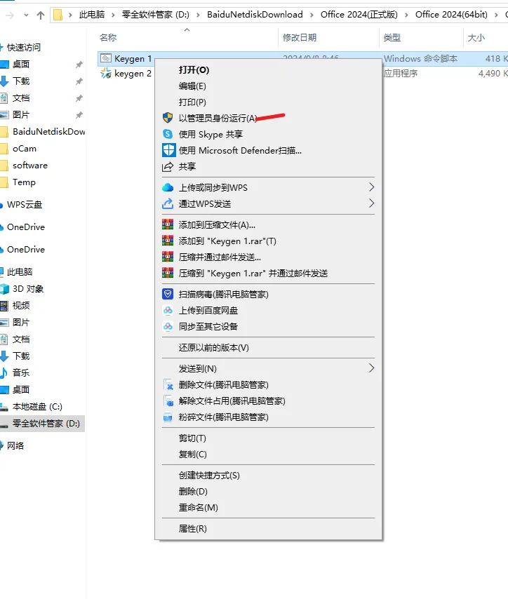 方式一: 9-1.1.鼠标右击【Keygen 1】选择【以管理员身份运行】。
