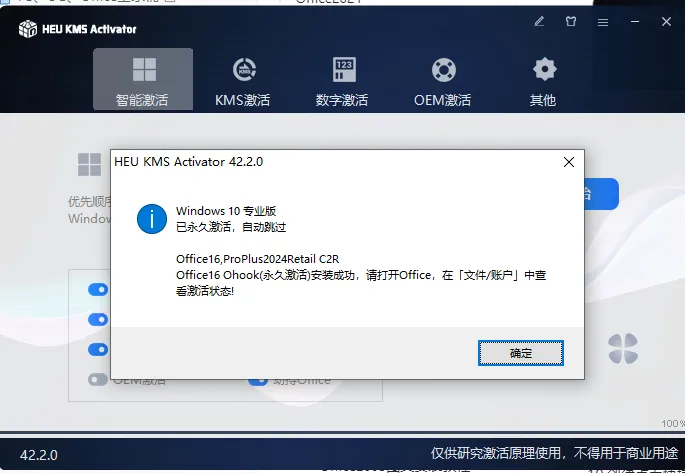 9-2.4.界面提示“永久激活成功”后点击【确定】。
