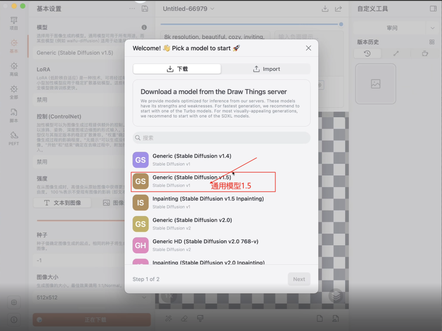 【SD】Draw Things 安装与使用教学清单 gys 发布于 5 天前 31 次阅读 一、安装教程 下载安装包 安装好 draw things 软件 app 打开 app,提示下载模型,推荐下载通用模型 1.5,下载完成会自动跳转下载其它相关 vae 等,继续下载,全部完成后,就可以输入提示词,生成图片啦,愉快的使用玩耍吧。 二、使用教学演示 draw things 基础使用教学演示[点击查看] 三、自定义导入模型教程 draw things 导入模型教学演示[点击查看]